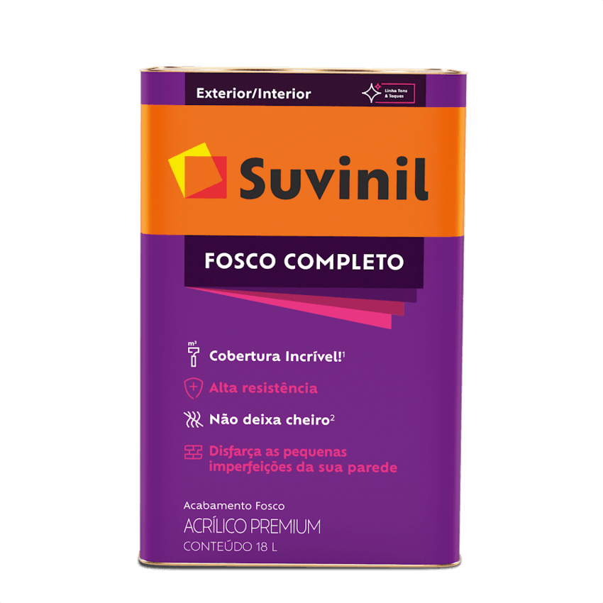 A Suvinil Fosco Completo tem o acabamento perfeito para esconder imperfeições nas paredes e não deixa cheiro. São mais de 1700 cores.