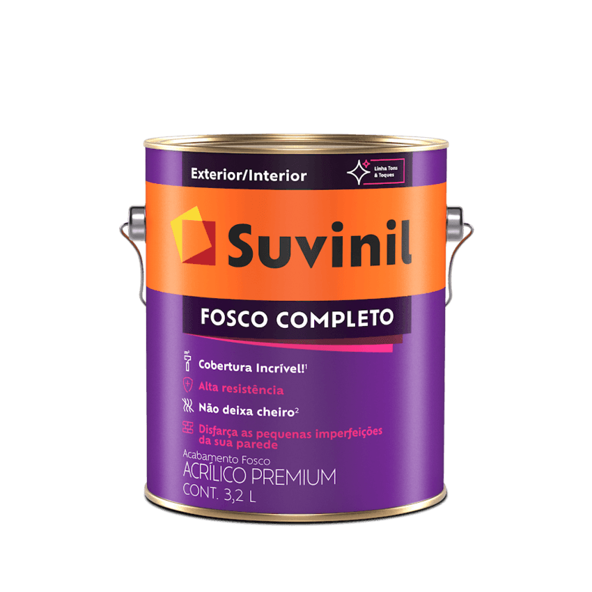 A Suvinil Fosco Completo tem o acabamento perfeito para esconder imperfeições nas paredes e não deixa cheiro. São mais de 1700 cores.