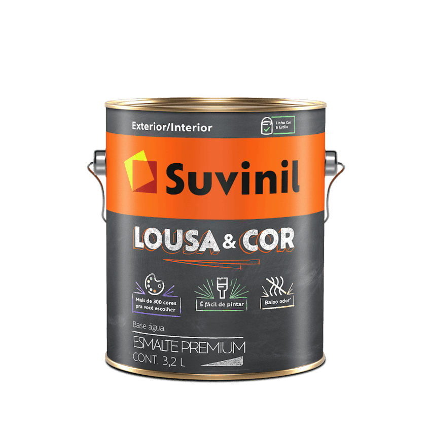 O Esmalte Suvinil Lousa e Cor transforma a parede em um mural cheio de estilo. São mais de 300 cores com baixo odor e fácil aplicação.